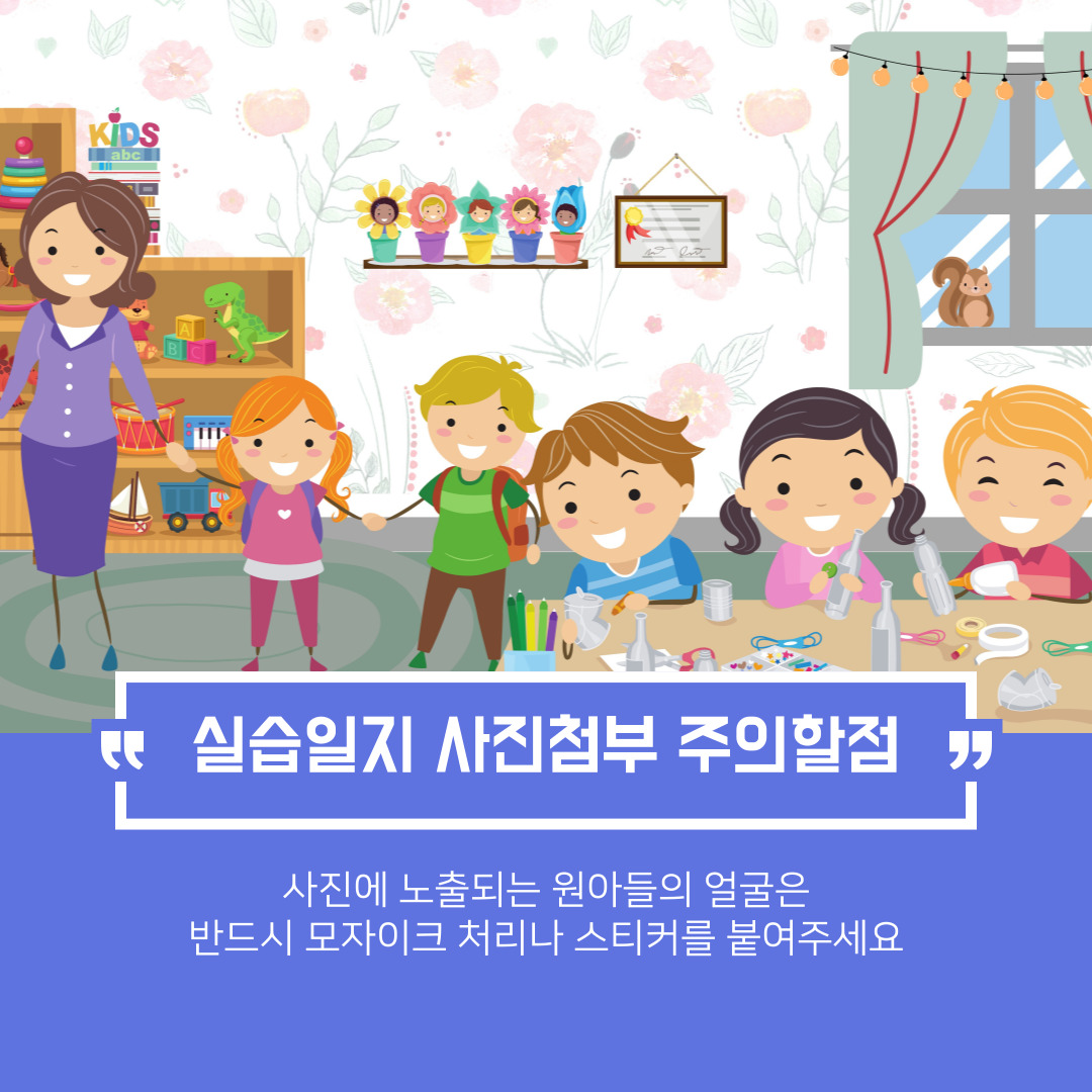 그리고 사진에 노출되는 원아들의 있는 경우 반드시 모자이크 처리하거나 스티커를 붙여야 합니다.