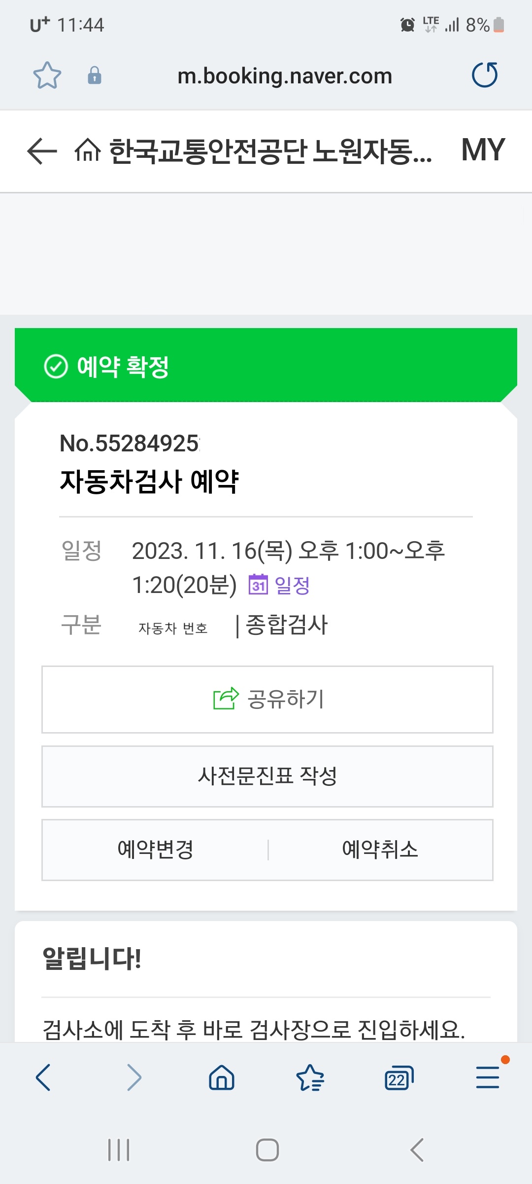 저는 오늘 갑작스럽게 예약을 하여 자동차 정기검사에 다녀왔습니다.