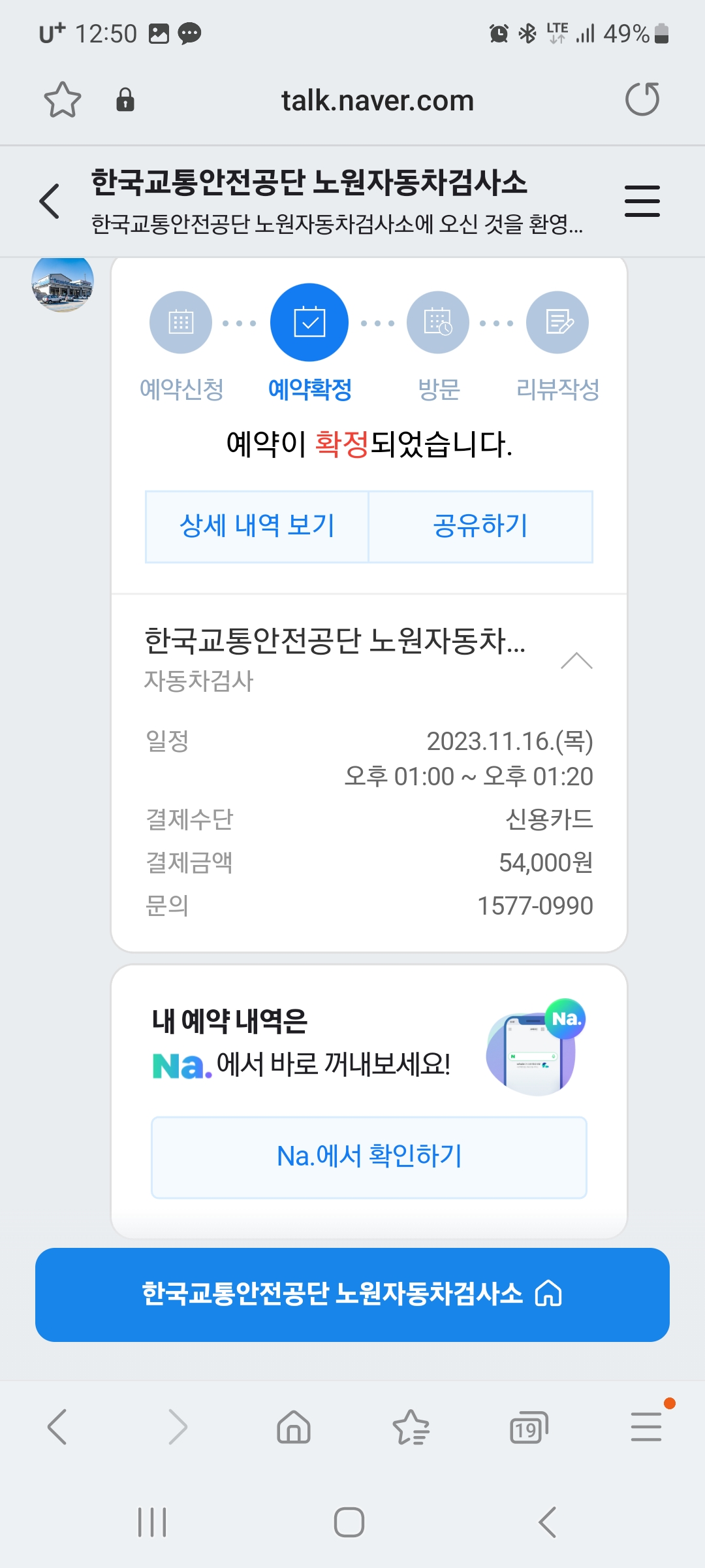 자동차 종합검사 시일이 다가오면 네이버 및 카카오로 정기검사 일정에 해당된다고 문자알림이 옵니다.