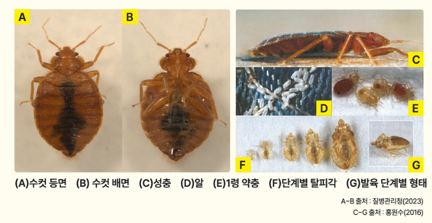 빈대는 주로 침대 모서리나 매트리스 사이 그리고 벽 틈에 서식하면서 어두운 밤에 나타나 사람의 피를 마시는 해충으로 가방이나 옷에 붙어 빠르게 퍼져나갑니다.